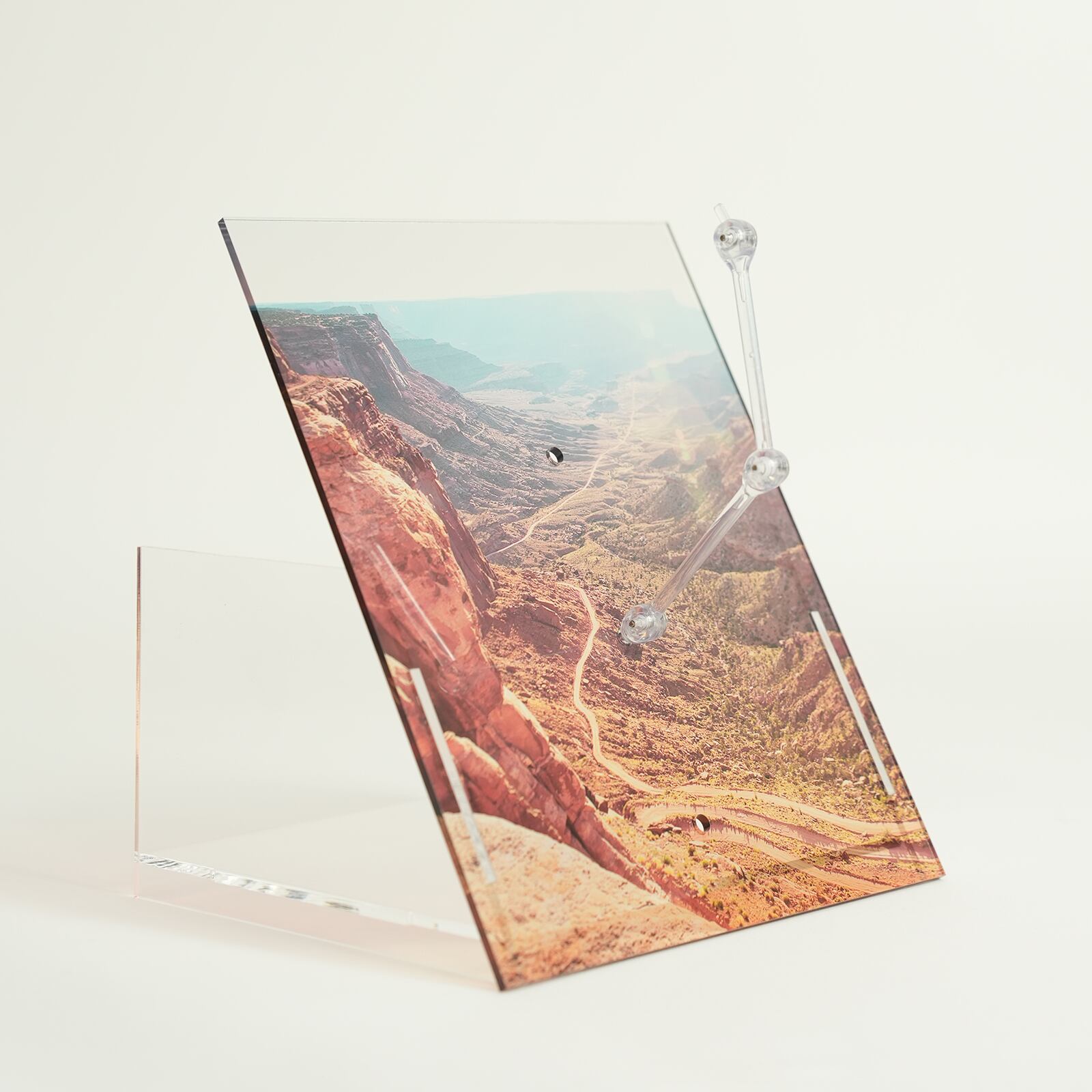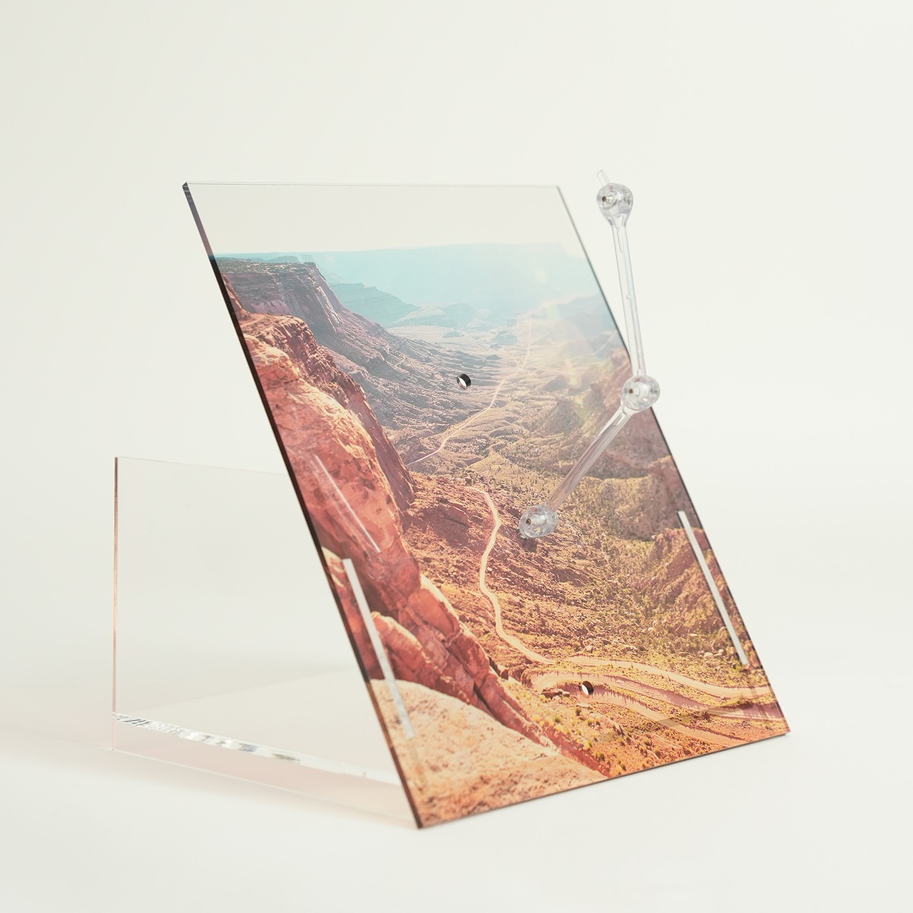 正面のアクリル製台座背面は角度がつき斜めになっており、躍動感のある立体的表現ができます。