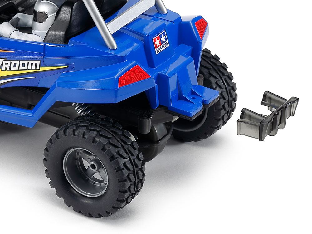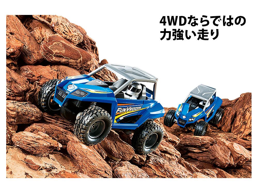 【 ゆかいなフォルムと元気な走り! 】 パワフルな走りが楽しいミニ四輪駆動車のプラスチックモデル組み立てキットです。ファンブルンは多用途バギー、UTV(ユーテリティ・タスク・ビークル)がモチーフ。優れた走行性能でアウトドアシーンを中心に活躍し、アメリカやヨーロッパではレースも行われている「スポーツUTV」をイメージしたボディはスポーティさあふれるデザイン。実車感を高める足まわりのパーツに加え、コクピット内にはドライバー人形をセット。荒れ地を走破するUTVの雰囲気たっぷりに仕上げ、メタリック調ステッカーがブルーのボディを引き締めます。シャーシはネジを使わず、パーツをパチッとはめ込むだけで完成するスナップキット。ダブルシャフトモーターを搭載し、前後のタイヤを動かして走る4WDの駆動方式を採用。高いグリップ力が特長のオフロードタイヤを装備して、急な坂道もぐんぐん登ります。手軽な組み立てで楽しめる、これまでにないミニ四駆です。