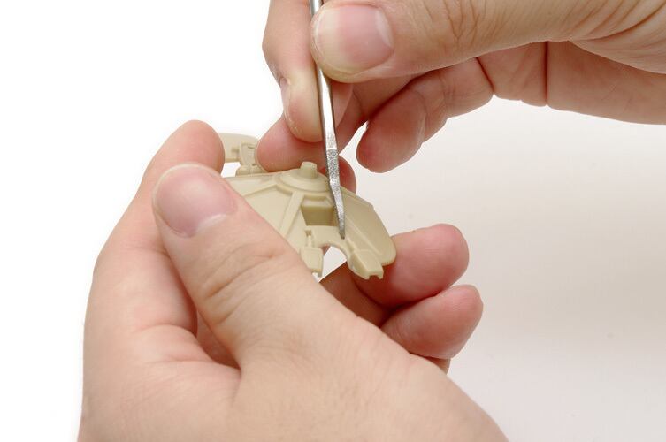 また、ダイヤモンドヤスリは一般的な鉄ヤスリとは異なり、ヤスリの目(研磨方向)がありません。サンドペーパーのように自由に動かして研磨することができ、細かな部分の研磨作業に便利です。