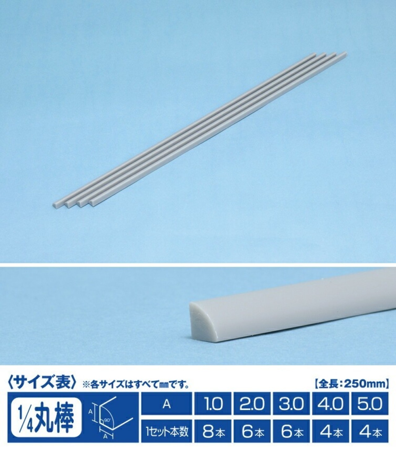 ウェーブ 1/4丸棒 1.0mm 8本入