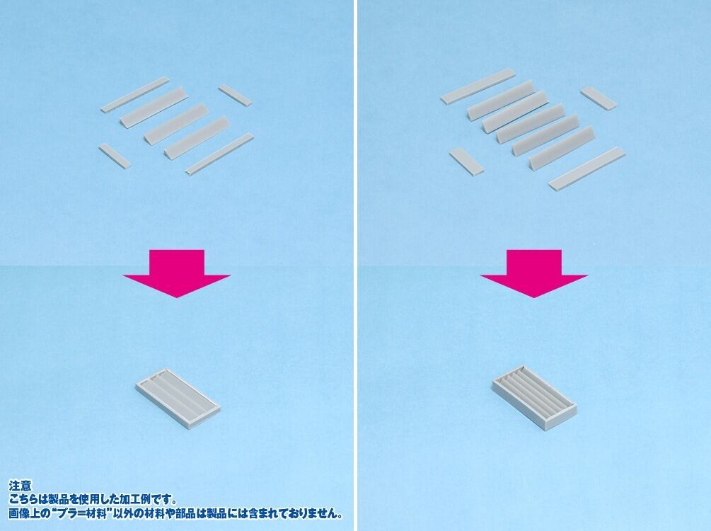 さまざまな工作に対応できるよう複数の形状、サイズをご用意しました。発売中の弊社製品「プラ=プレート」、「プラ=パイプ」、「プラ=丸棒」、オプションパーツシリーズ各種と組み合わせると、オリジナルパーツの製作に役立ちます。