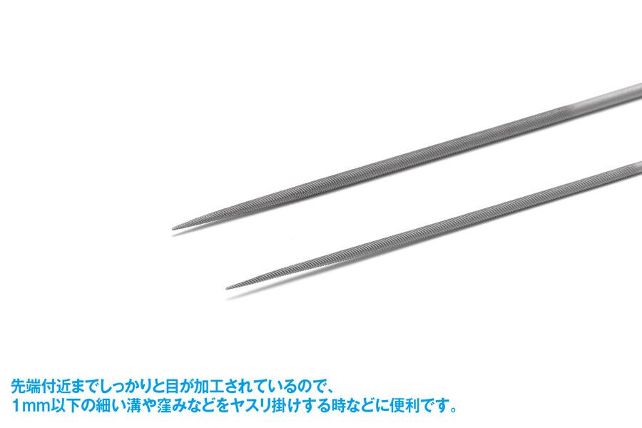 先端付近までしっかりと目が加工されているので、1mm以下の細い溝や窪みなどをヤスリ掛けする事が出来ます。