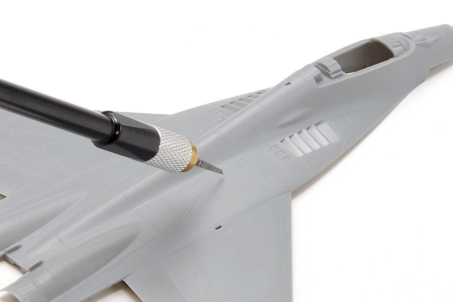 スジ彫り作業に役立つ精密ノミ「HGマイクロチゼル」と専用グリップのセットです。