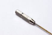 特殊構造の取付部を採用しており、「ウェーブ HGワンタッチピンバイス」と組み合わせることにより、ドリル刃の交換をワンタッチで行うことが可能です。 ドリル刃の表面にはチタンコーディングが施されており、切削性能が長持ちします。 取付部の6角軸にドリル径を彫刻してあります。