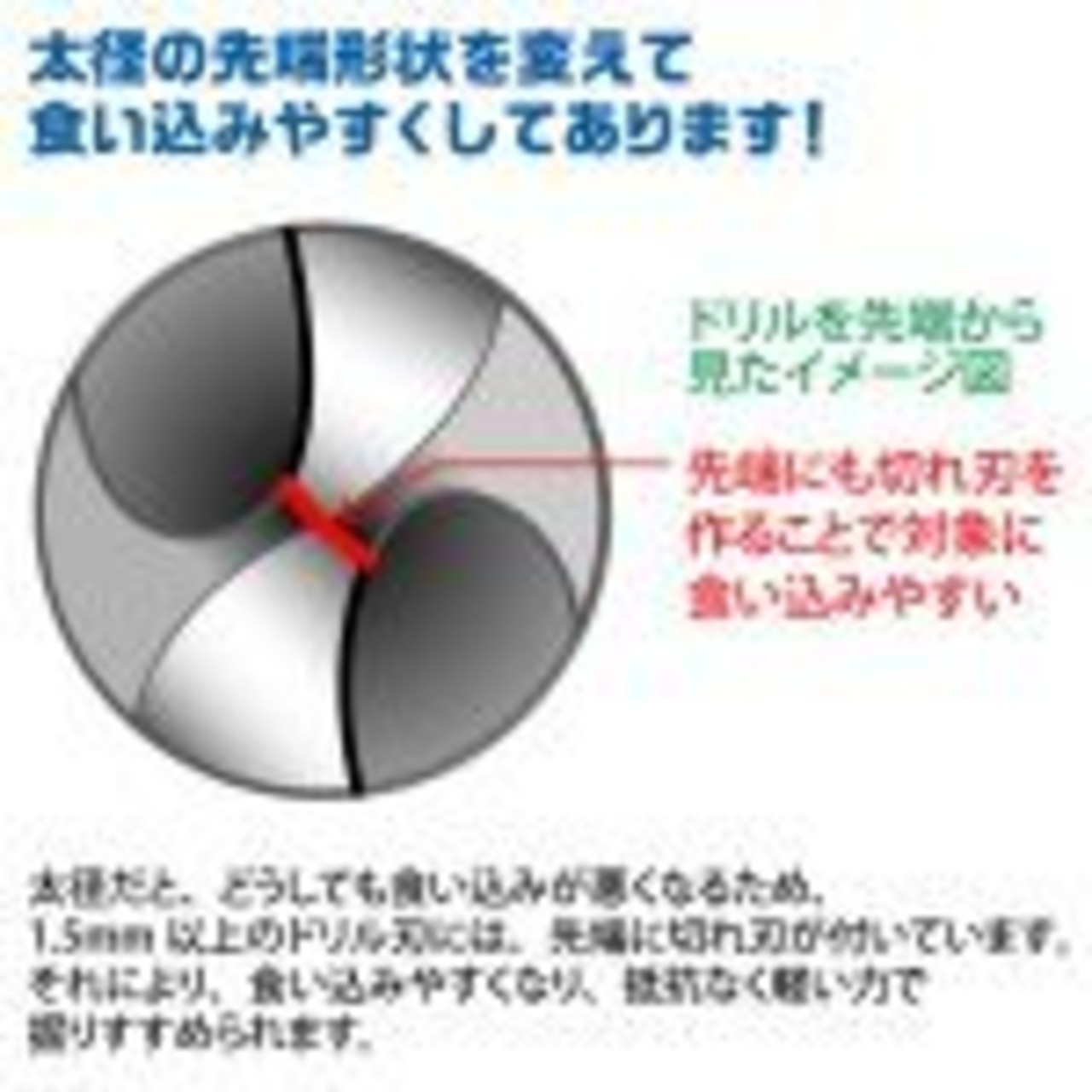 ・さらに1.5mm以上のドリル刃には先端部分に切れ刃をプラス!