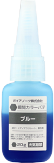 高粘度の色付き瞬間接着剤系パテです。5色(ブルー、レッド、イエロー、ブラック、ホワイト)を混色することで成型色と近い色を作ることができます。遅硬化タイプなのでじっくり調色してから使用できます。硬化後は切削性が良く、デザインナイフや紙やすりで仕上げることができます。合わせ目消しや気泡の穴埋めに最適です。硬化までに時間がかかるので、早く作業したい場合は硬化促進剤(スプレーなど)をご使用ください。容器をリニューアルしたことで使い勝手、保存性が向上しています。