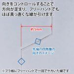 直進の動きに特化した刃先形状なので、刃先の特性とコツを理解すればフリーハンドでも真っ直ぐ綺麗な線を引けるようになります。