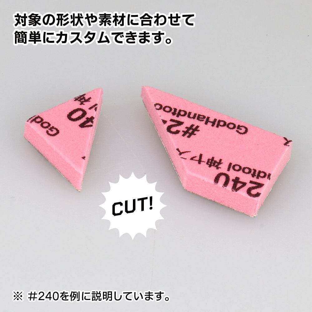 紙ヤスリと違い、布ヤスリなので曲面、平面の整面、処理など様々な場面で使える汎用性を持っています。