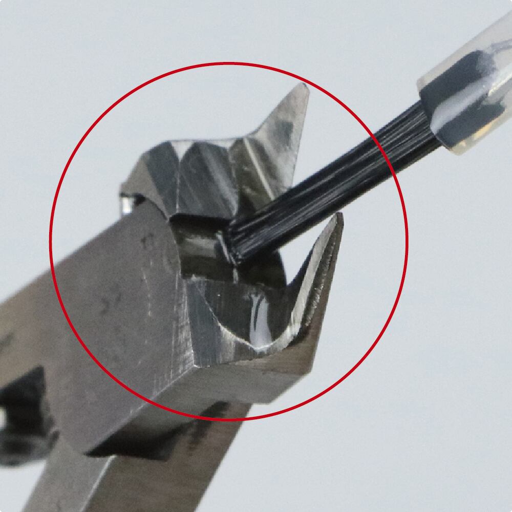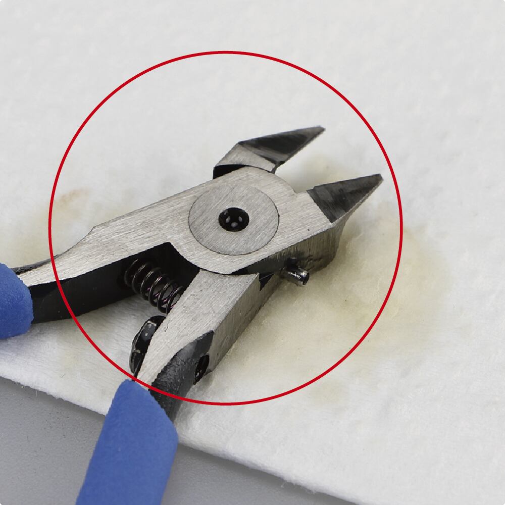 切断対象に油が付着する可能性がありますので、必ずニッパー使用前に表面をしっかり拭き取ってからご使用ください。