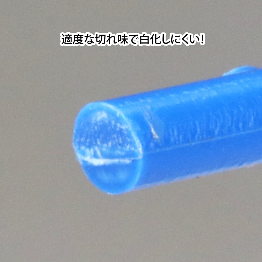 丸みのないフラットな刃先なので、切断面を平らにカットすることができます。また、不意の操作でも壊れにくい強度を保っており、刃折れの心配も少なく安心してご使用いただけます。