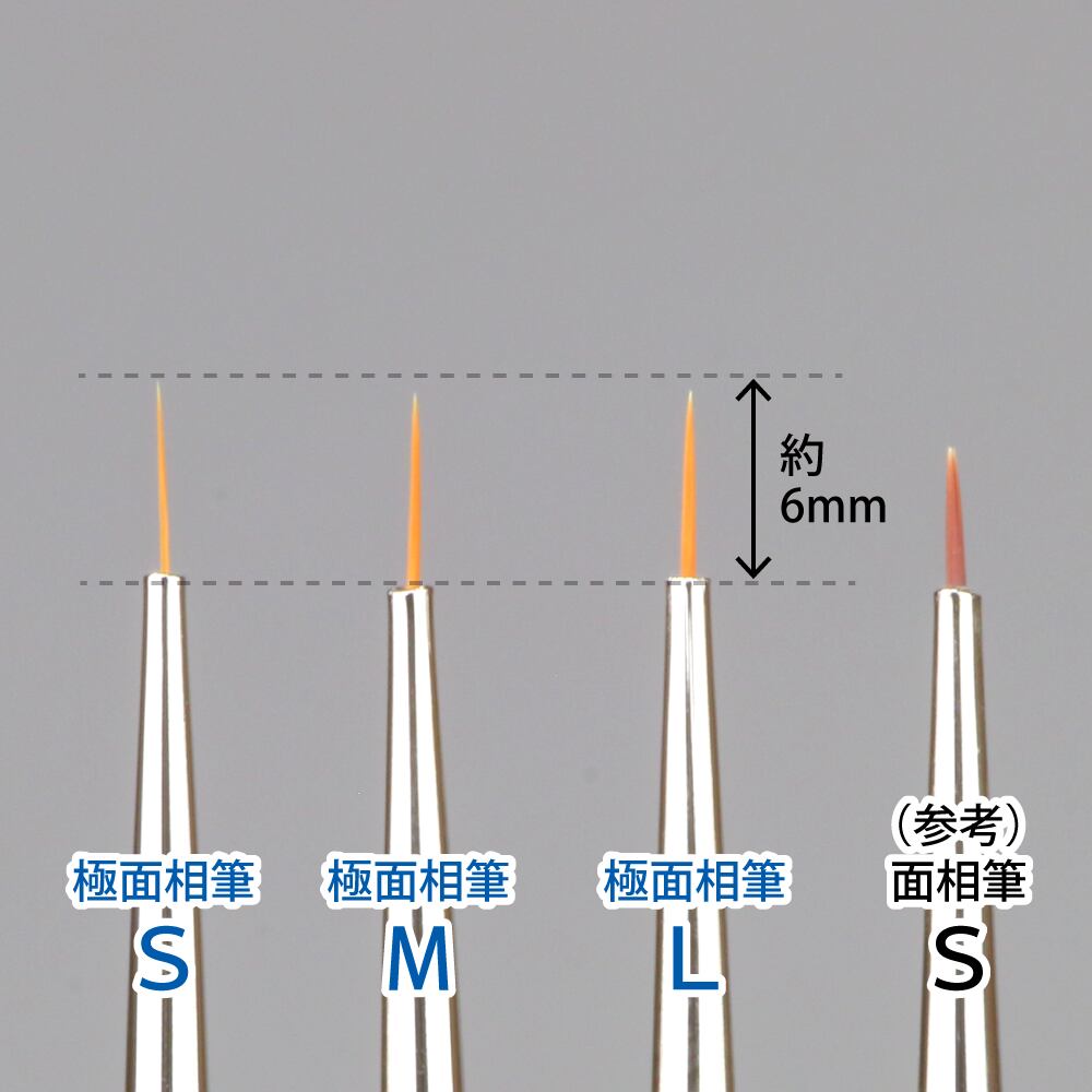 【M】は極面相筆SとLの中間の太さで、性能的にも両社の中間です