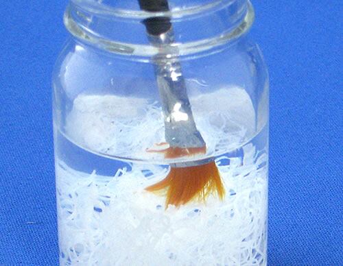 T-04、T-13の各ツールウォッシュ又はT-10 ブラシクリリンを容器に入れて、特製マットの上で筆を軽くこすりつけて汚れを取ってください。筆を傷めにくく、汚れはしっかり落とします。