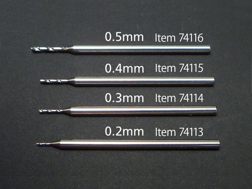 【 基本スペック 】 高速度鋼製 ドリル刃0.4mm、軸径1.0mm