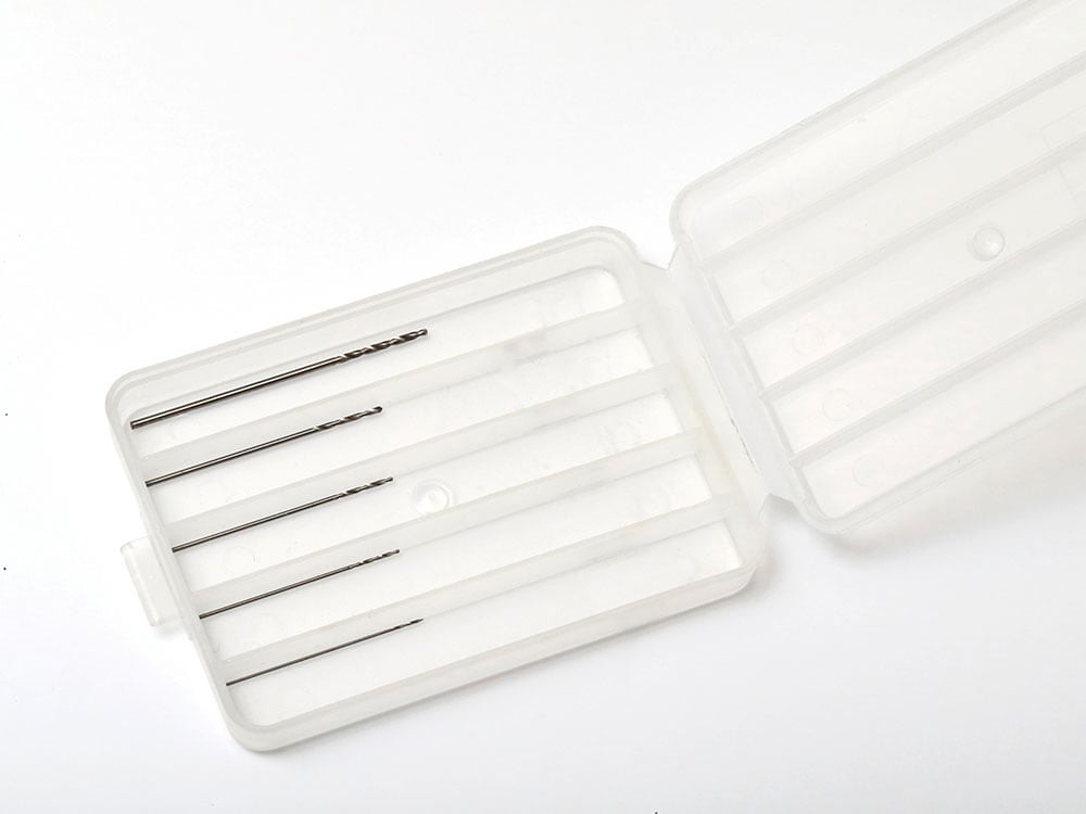 精密ピンバイスに装着できる極細ドリル刃セットです。飛行機や艦船、戦車モデルの機銃銃身などの開口や真ちゅう線を使っての追加加工など、高い品質でスケールモデルのディテールアップに活躍します。プラスチックをはじめ木材、アルミなどの穴あけ加工にも使えます。収納ケースとサイズ表示ステッカー付き。