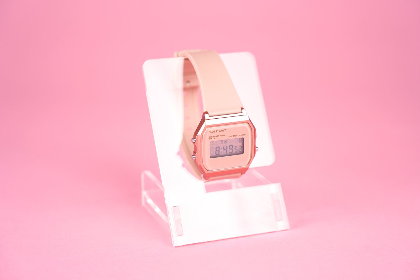 シンプルで使いやすい、オリジナルデザインのアクリル製ウォッチスタンドです。