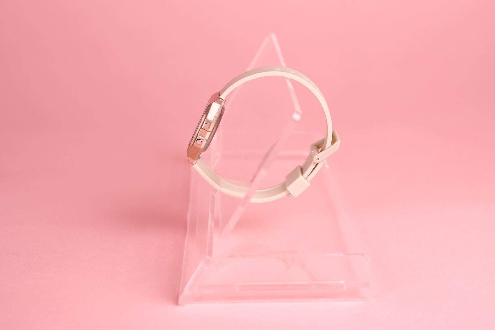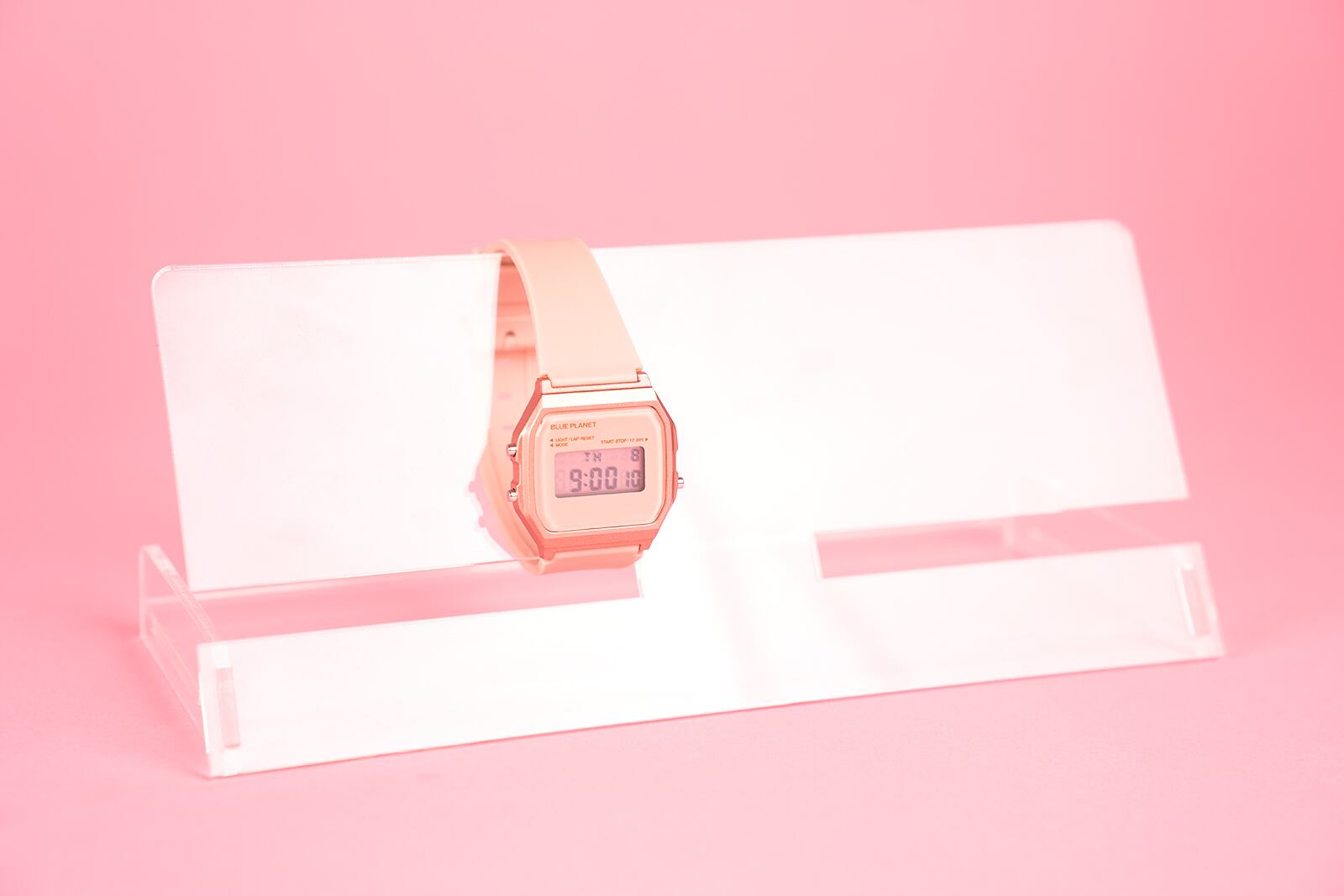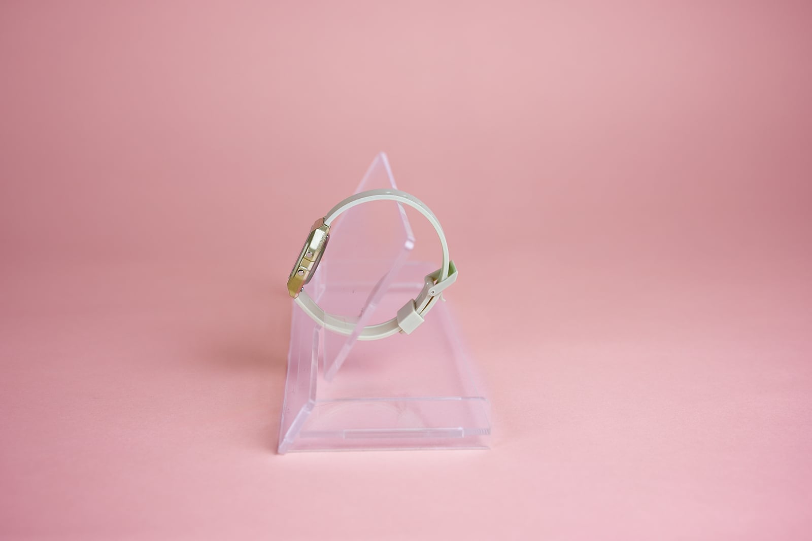シンプルで使いやすい、オリジナルデザインのアクリル製ウォッチスタンドです。