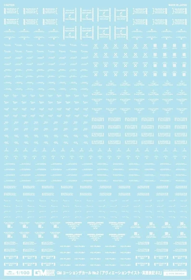MYKデザイン GM-005 1/100 GMコーションデカールNo.2「アヴィエーションテイスト・英語表記#2」ホワイト
