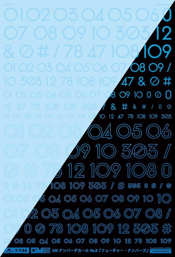 MYKデザイン GM ナンバーデカール No.8「フューチャー・ナンバーズ」クリア&ネオンスプラッシュブルー【初回限定生産】