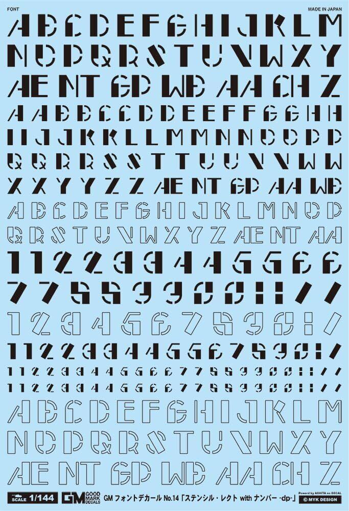MYKデザイン GM-823 1/144 フォントデカール No.14「ステンシル・レクト with ナンバー -dp-」【ブラック】汎用 水転写デカール グッドマークデカール[アシタのデカール]
