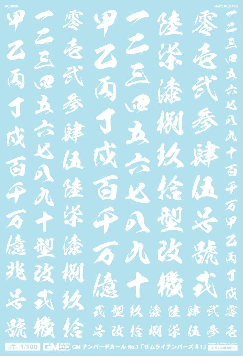 MYKデザイン GM-020 1/100 GMナンバーデカール No.1「サムライナンバーズ #1」ホワイト