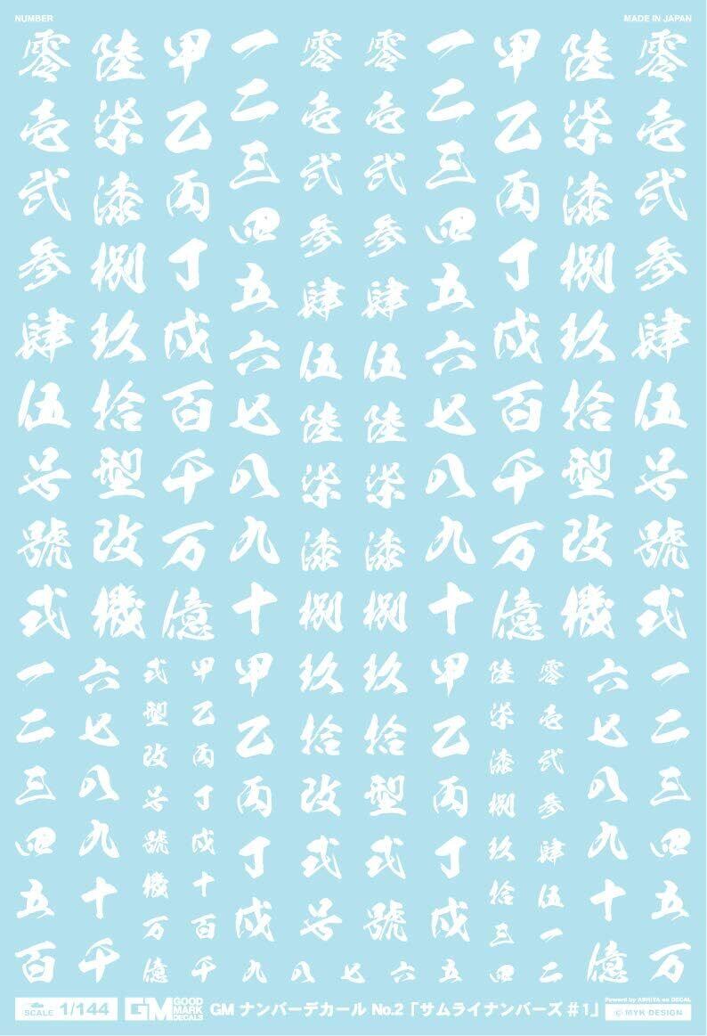 MYKデザイン GM-023 1/144 GMナンバーデカール No.2「サムライナンバーズ #1」ホワイト