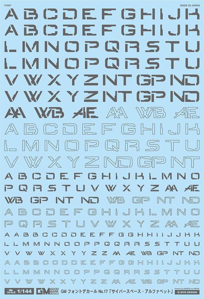 MYKデザイン GM フォントデカール No.17「サイバースペース・アルファベット」ダークグレー
