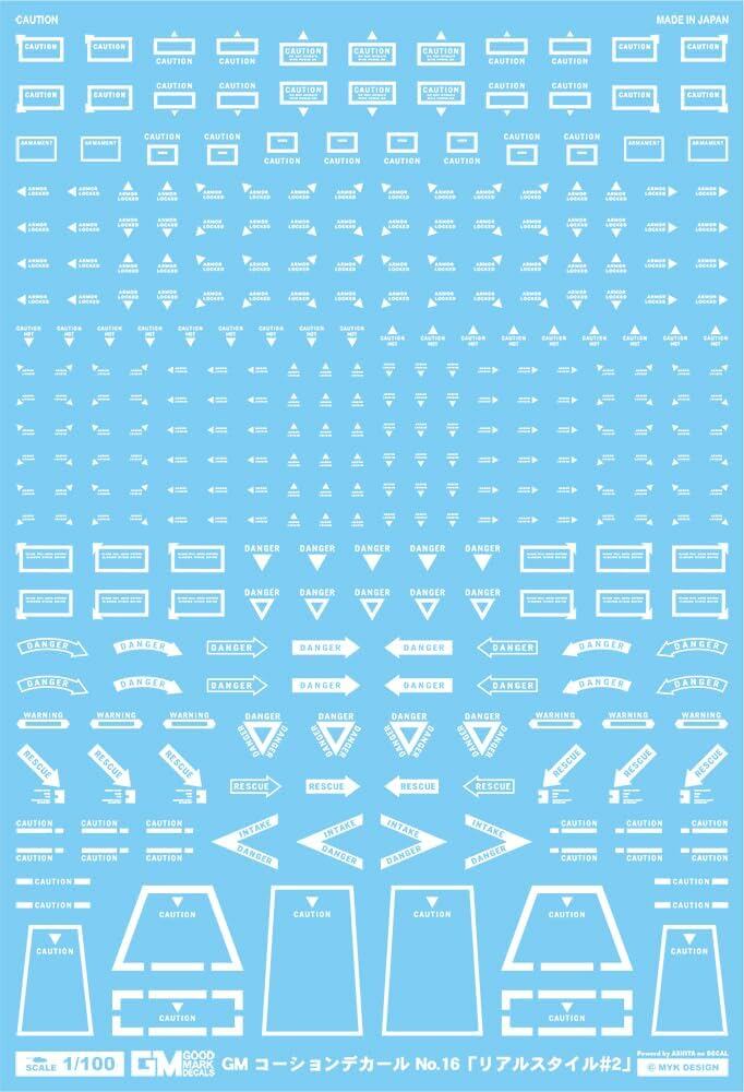 MYKデザイン GM コーションデカール No.16「リアルスタイル#2」ホワイト