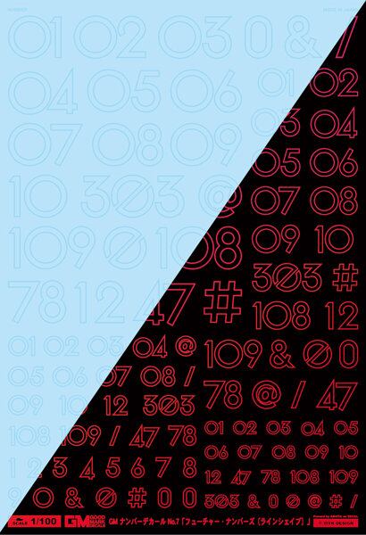 MYKデザイン GM ナンバーデカール No.7「フューチャー・ナンバーズ〔ラインシェイプ〕」クリア&ネオンファイアレッド【初回限定生産】