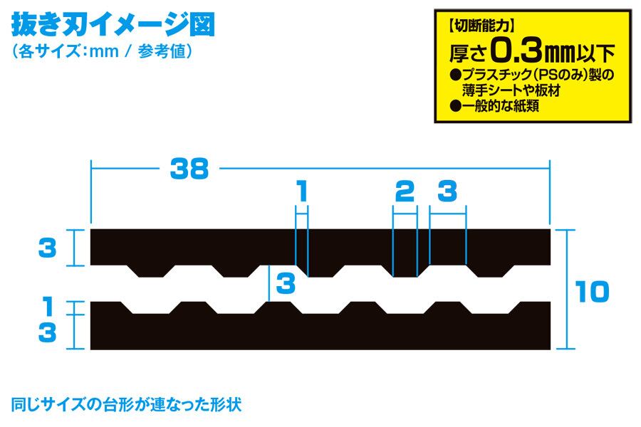 ※本製品はHT-436の対象素材(プラスチック類)をPSに限定したリニューアル品です。抜き刃のデザインや各部のサイズは従来(HT-436)と同じものになります。