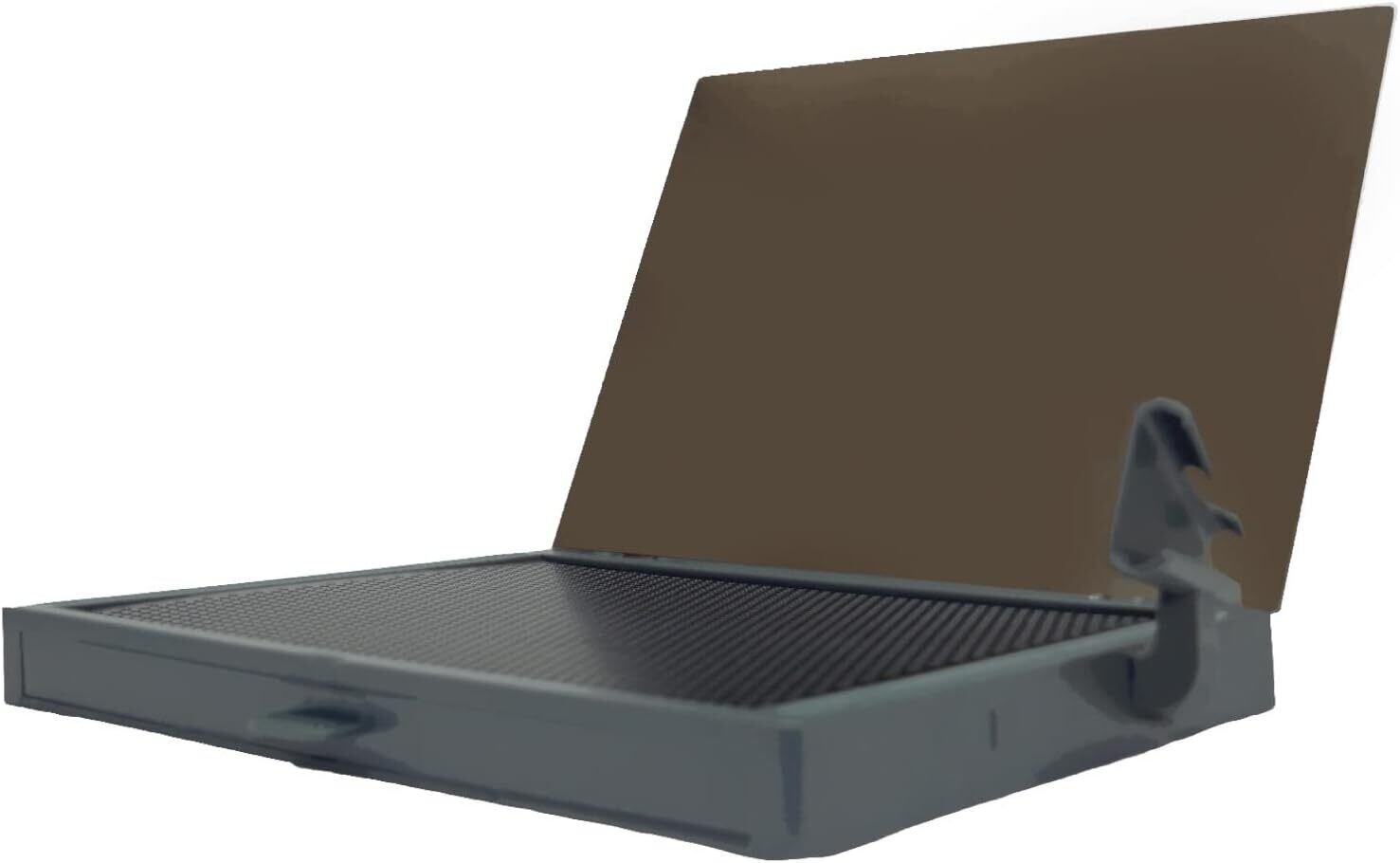 作業部に穴が無数に空いた金属製のプレートを配し、ゲートカットやヤスリがけ等をプレートの上で行えば、切りクズや削りカスで自身の作業場を汚さず、作業に集中することが出来るコンパクトな作業台です。