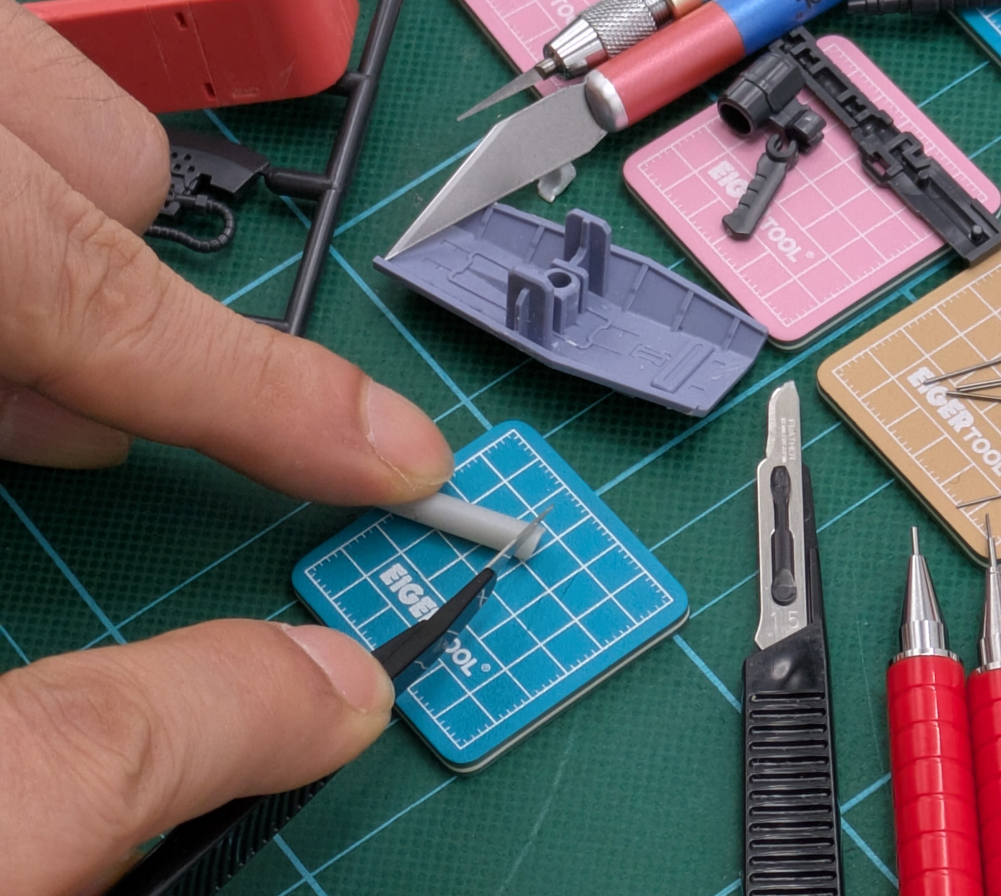小型で楽に移動や回転できるため、自由な角度でデカールやマスキングがカットできます。