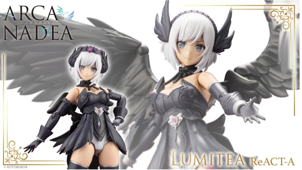 『アルカナディア』シリーズより、光属性の天使型ディアーズ「ルミティア」が、夜の暗闇をイメージさせる闇属性Ver. 『ルミティア ReACT-A』としてプラモデルで登場です。